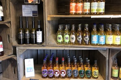 Tiddly Pomme is a large, attractive shop with large doors that open on to Brogdale’s Market Place. It’s a lovely place for people to visit and shop. You can combine a trip to the shop with something lovely to eat and drink at the Courtyard Café followed by a walk amongst the rare and heritage fruit orchards at Brogdale Collections (you need an annual Orchard Pass to do this).